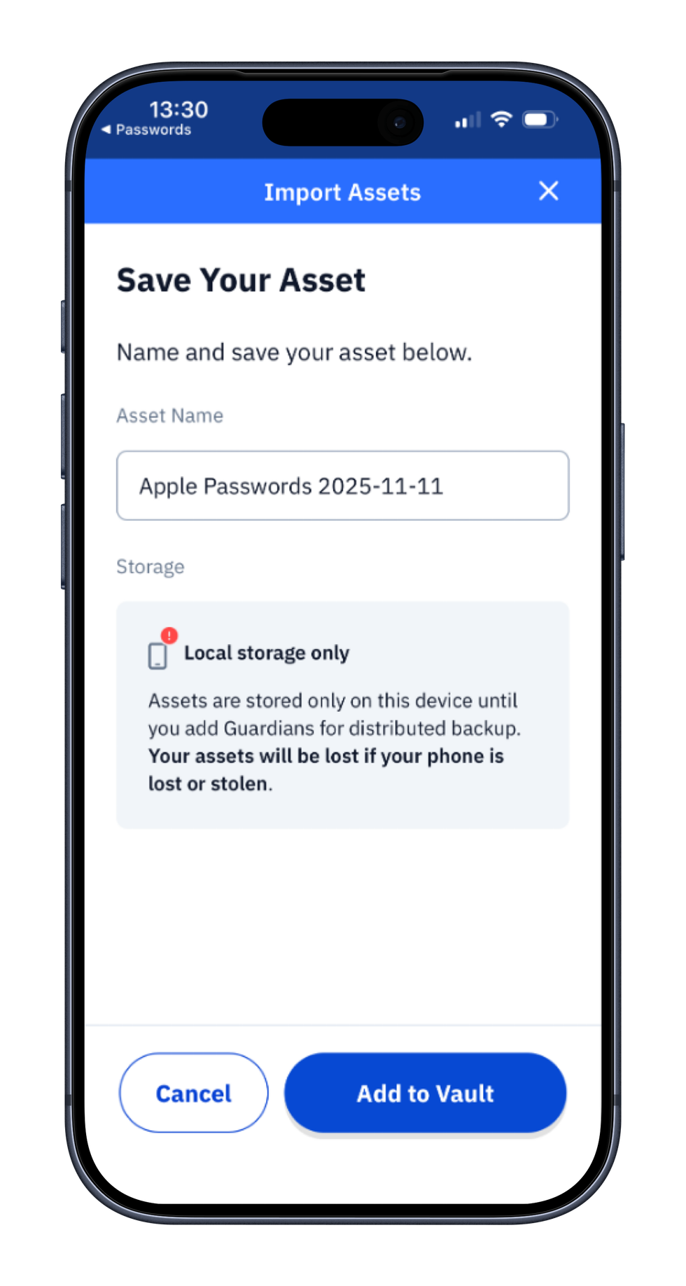 Vault12 Guard now supports Apple’s new Credential Exchange Protocol (CXP), making it much easier to bring your existing credentials into your inheritance Vault. CXP is a new industry standard designed for the secure transfer of passkeys and passwords between compatible apps and platforms—so instead of manually copying details or re-creating accounts, you can move them directly and safely into Vault12 Guard.