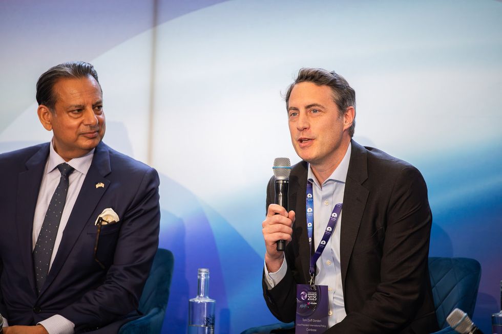 Hi, everyone. Great to be here. So I'm Tom Duff Gordon. I'm the VP of International Policy at Coinbase. So I look after all the relationships that we have with government and regulators outside of the US. I've been at Coinbase for three years, and prior to that I was in TradFi. I was at Credit Suisse for 15 years. Looking forward to the conversation.