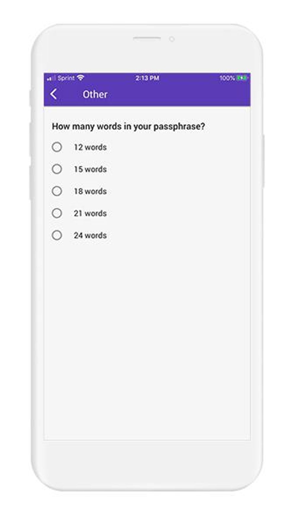 • If you selected "Other" Enjin will ask you how many words are in your recovery phrase. Otherwise, you will go directly to entering your recovery phrase