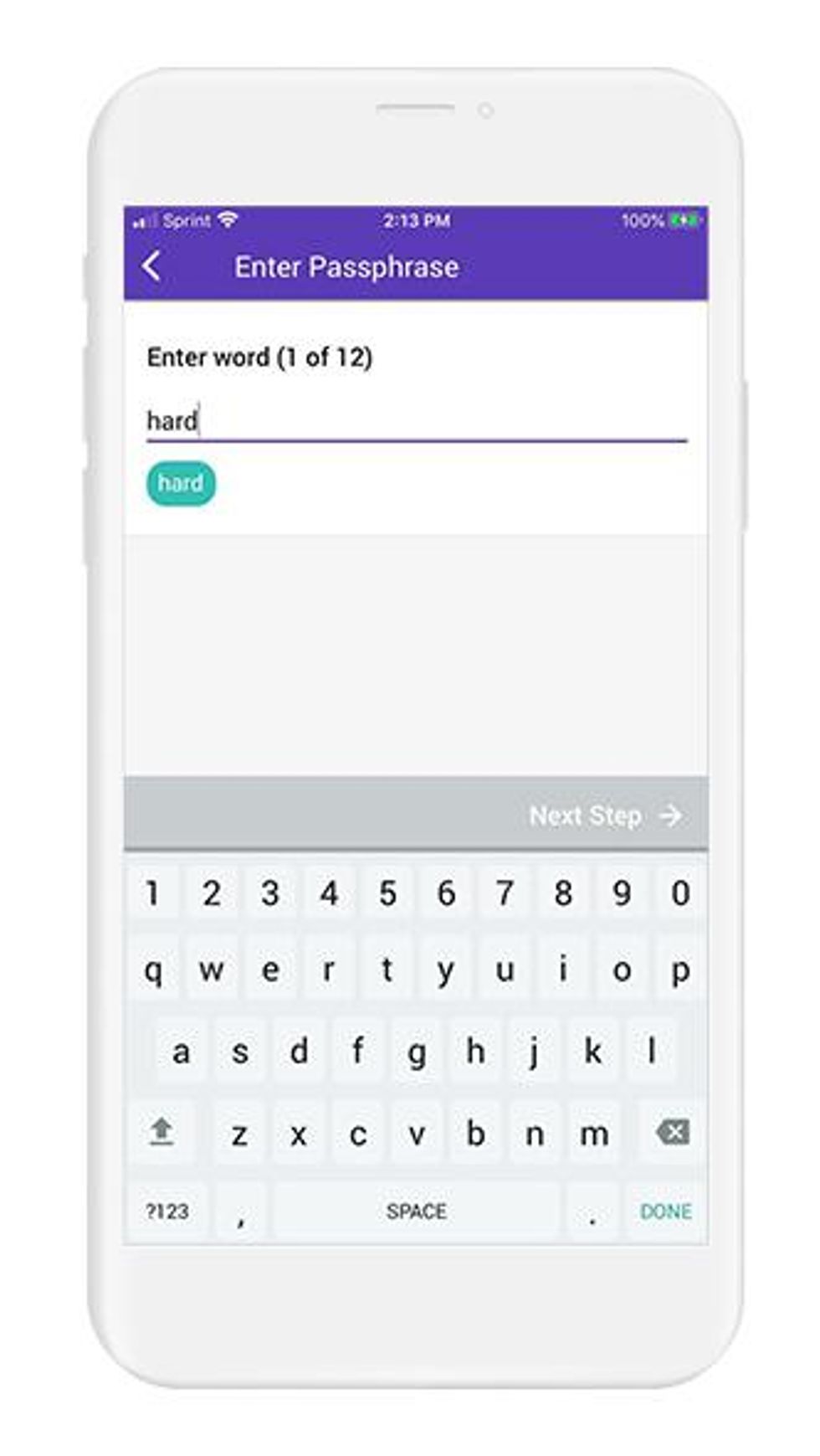 • After you select word #1, start typing word #2 and repeat this process for all the words in your recovery phrase