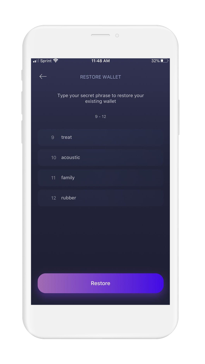 • Enter words 9-12 of your recovery phrase, matching each word to the correct number label