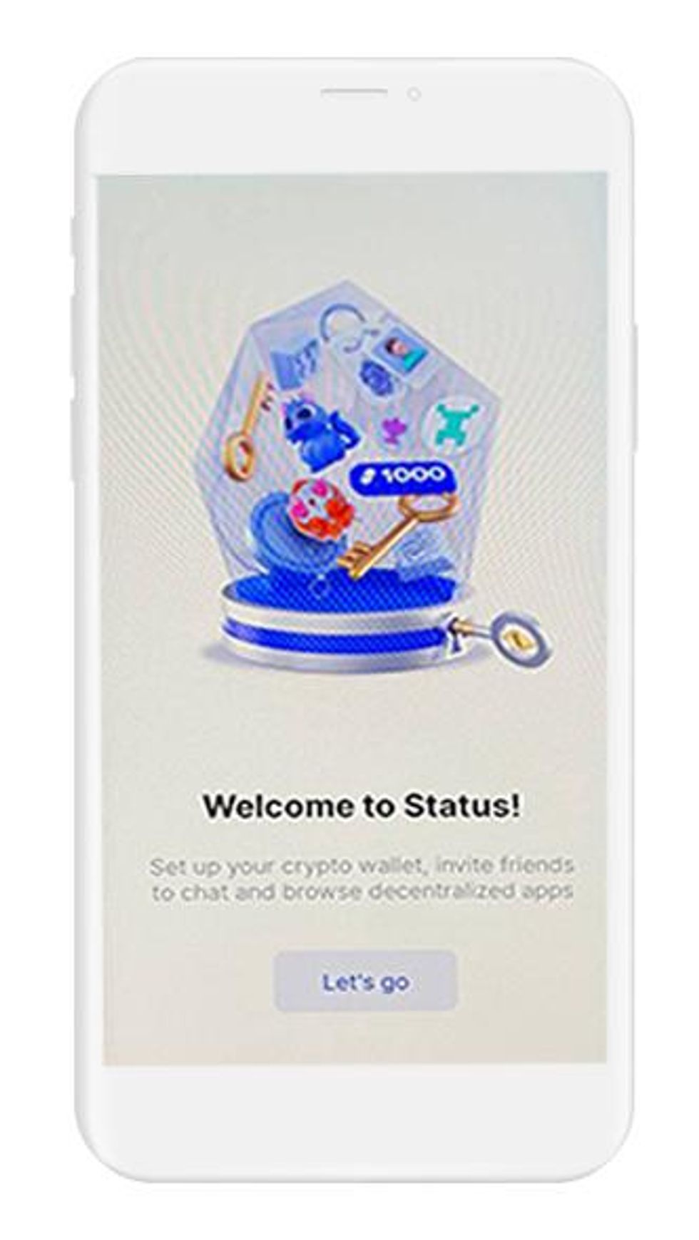 Welcome to Status! Tap on "Let's go" to enter your wallet.