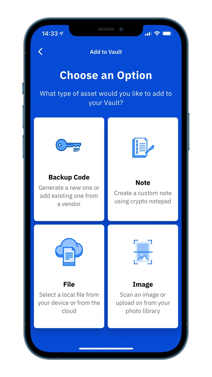 The Vault12 Guard app enables secure decentralized backups, and provides inheritance for all your seed phrases and private keys across any blockchain, including Bitcoin, Ethereum, and others, and for any crypto wallet.