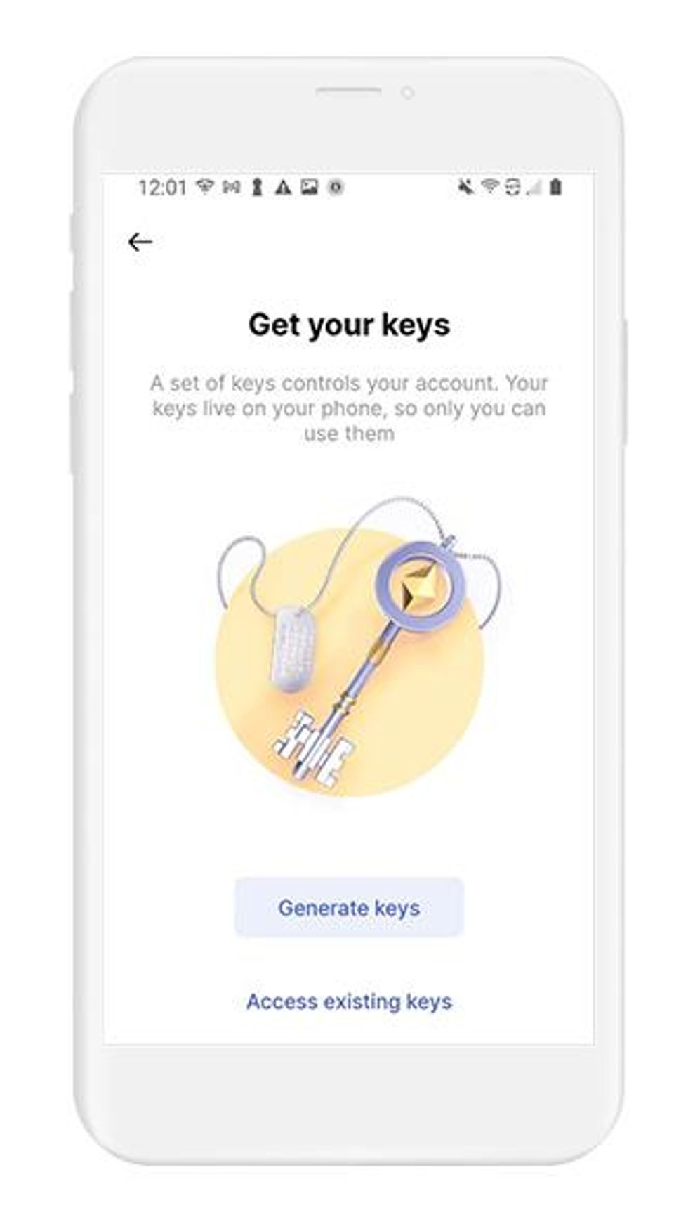 - Select Generate keys to create a new account.