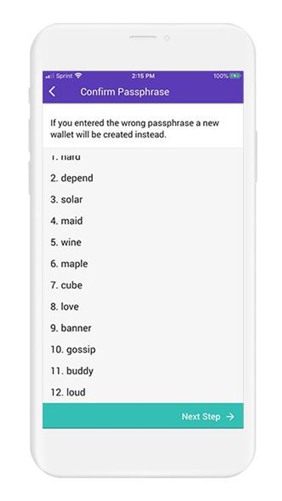 - Returning to your wallet, the wallet will quiz you about the words in your recovery phrase. This step is done to verify that you have copied your seed phrase accurately.
