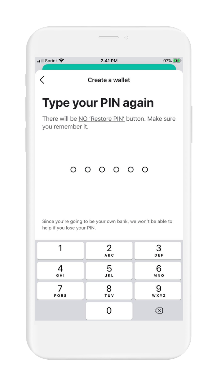WARNING: Your PIN cannot be recovered. If you need to reset your PIN, you will need to recover the wallet using your recovery phrase. This is why it is so important to make a backup. Next-generation tools like Vault12 digital vault make this process simple.