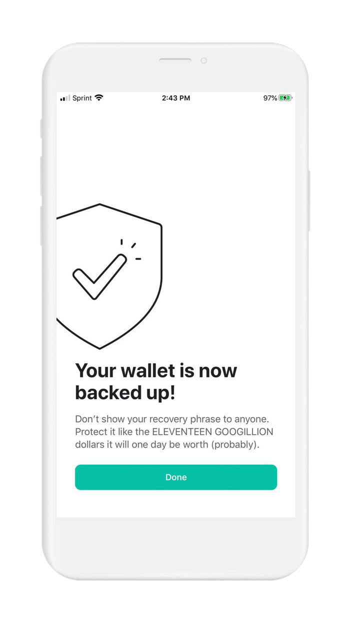 Your wallet is now ready to use, and it is up to you to finish backing up your recovery phrase properly. The next section of this guide has an overview of all the options that are available to you. Pick the option that works best for you and provides the most security. You are now ready to go to the next section and finish backing up your recovery phrase!
